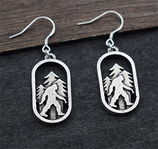 Bigfoot walking in the forest, what could be more natural than that? Our Bigfoot Forest earrings have depth with the trees behind the Sasquatch, plus a cut out background.