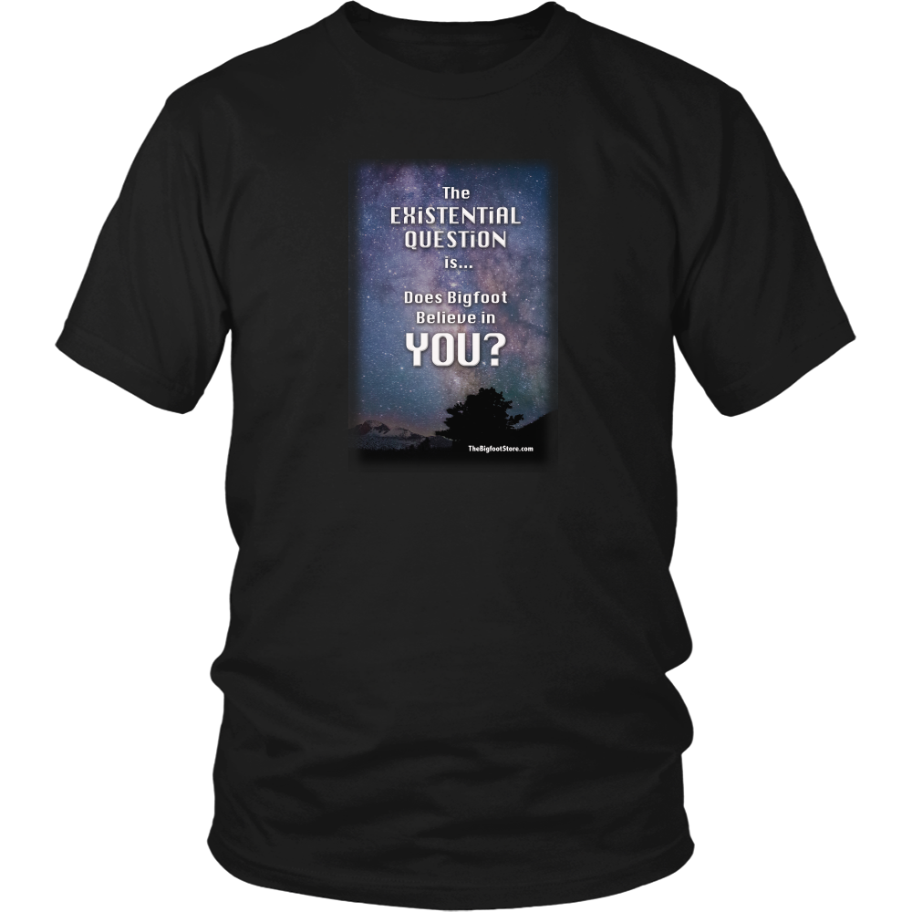 It's true: the most popular question surrounding the existence of Sasquatch is "Do you believe Bigfoot is real?!" This great statement shirt represents a deeper, mind-expanding question along those same lines...