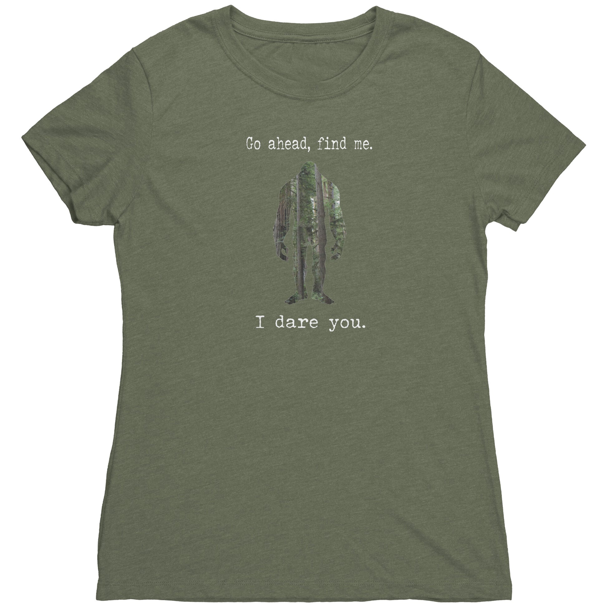 Do you have what it takes to venture into the deep, dark forest in search of an intelligent, bipedal being that just happens to be around 8-feet tall and about 800 pounds? While we all would like that "proof" of Sasquatch's existence, maybe it's just safer to wear this shirt and dare someone else to find the Big Fella!