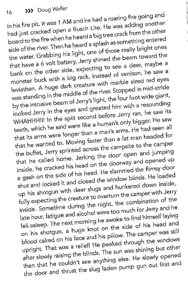 This is Doug Waller's second book about Bigfoot. He has also written Standing in the Shadows (2013), Screams in the Night (2016), Bigfoot Reports (2019), Silent Forest (2020), and Stolen Serenity (2023). He lives in Norwich, Ohio.