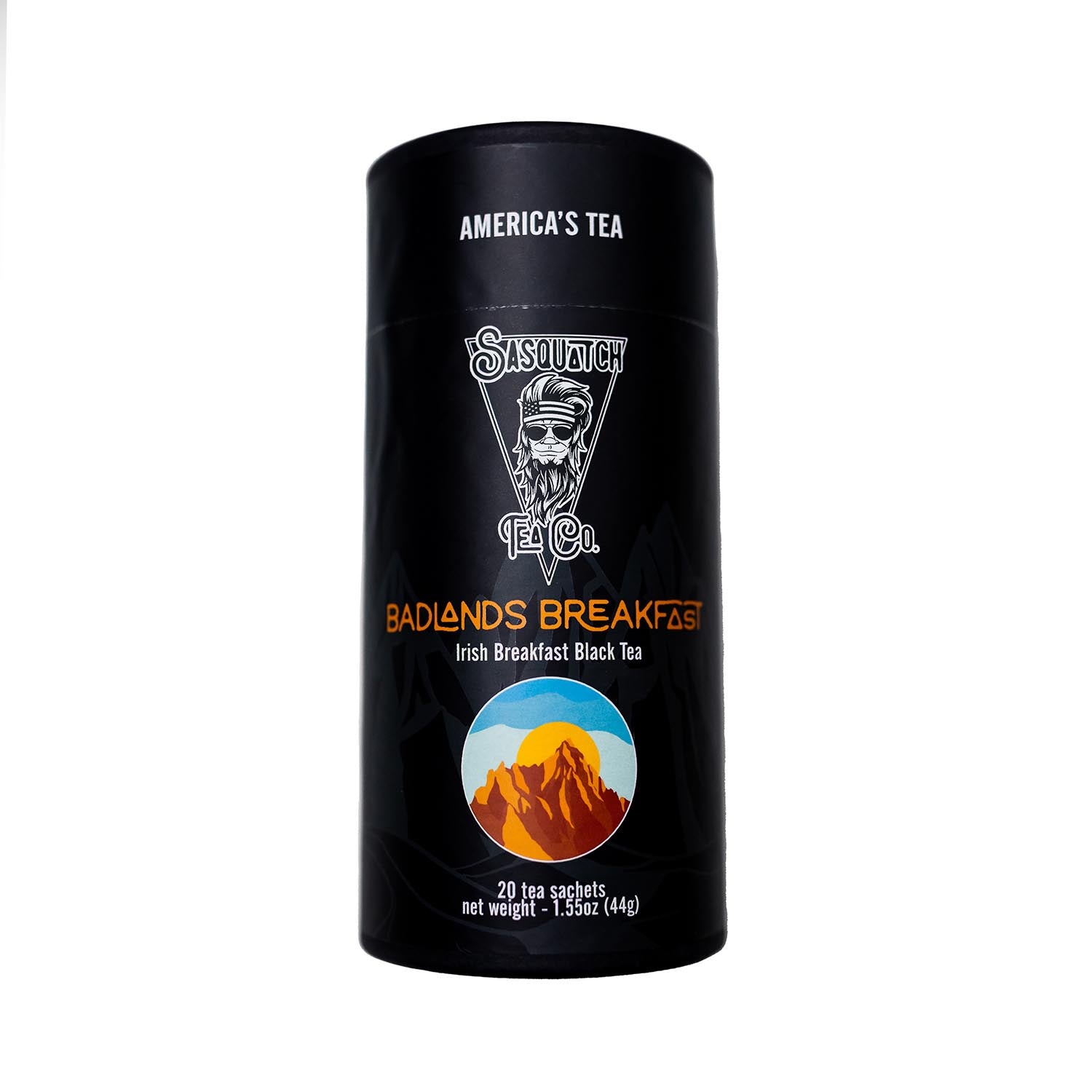 BADLANDS BLACK BREAKFAST TEA - Badlands Black Breakfast is your classic morning pick-me-up. A robust and full-flavored Irish Breakfast tea perfect by itself, or with cream and sugar to get yourself in gear to take on the day. 40mg of caffeine per 8oz cup.