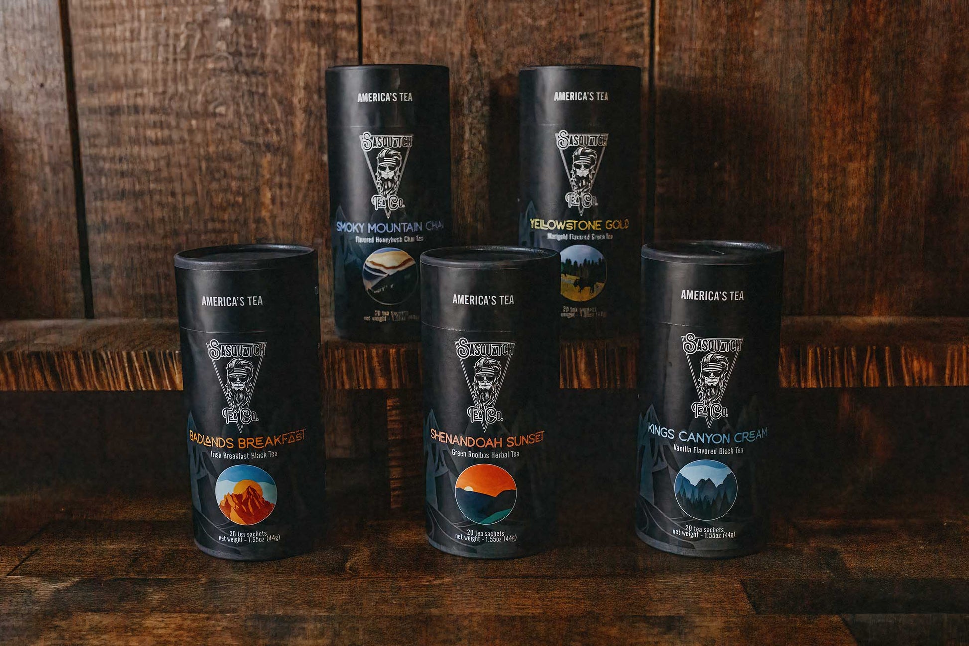 Sasquatch Tea comes in 5 high quality varieties, each named after one of our incredible National Parks. Each canister includes 20 sachet tea bags designed to steep the utmost in flavor. Purchase canisters individually ($14.99 ea), or in a Beast Bundle of all 5 varieties ($74.99). A Son of Sasquatch Tea Sampler is also available ($7.99).