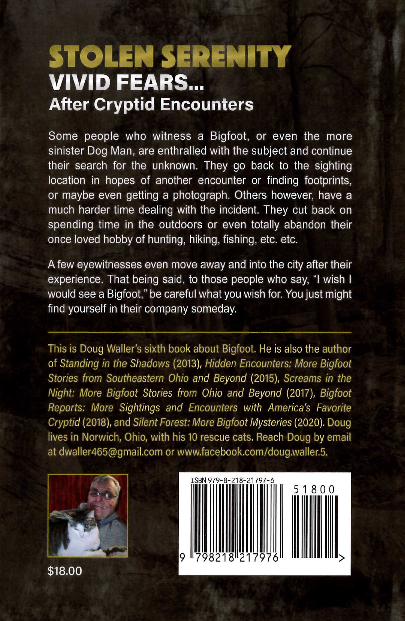 This is Doug Waller's sixth book about Bigfoot. He has also written Standing in the Shadows (2013), Hidden Encounters (2015), Screams in the Night (2016), Bigfoot Reports (2019), and Silent Forest (2020). The author lives in Norwich, Ohio.