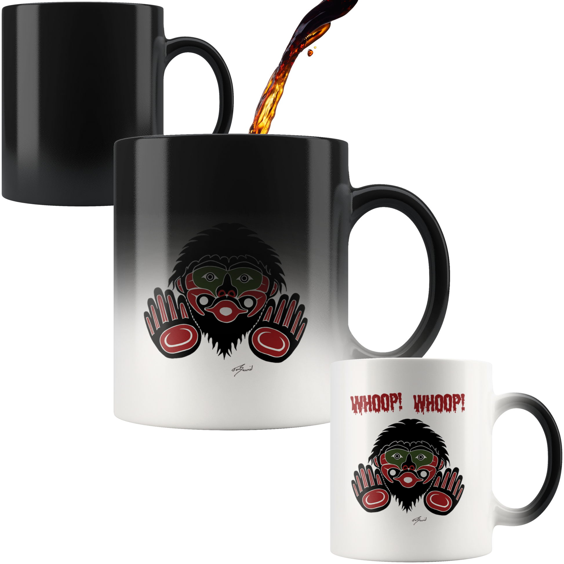 Experience the magic of our 11oz color changing mugs! At first glance these look like your standard black mugs, but upon adding hot liquid, the imprinted original Thomas Sewid "Whoop! Whoop!" image come to life with perfect clarity!